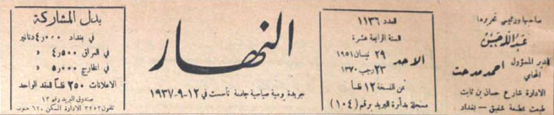 النهار (جريدة : بغداد، العراق : 1937)