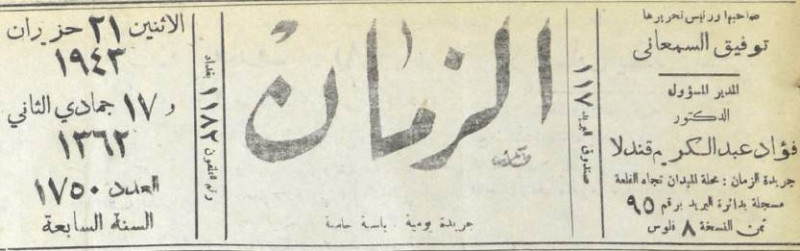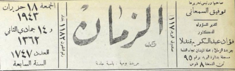صاحبها ومدير تحريرها : توفيق السمعاني.