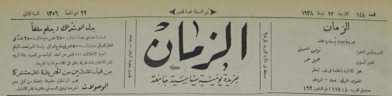 صاحبها ومدير تحريرها : توفيق السمعاني.