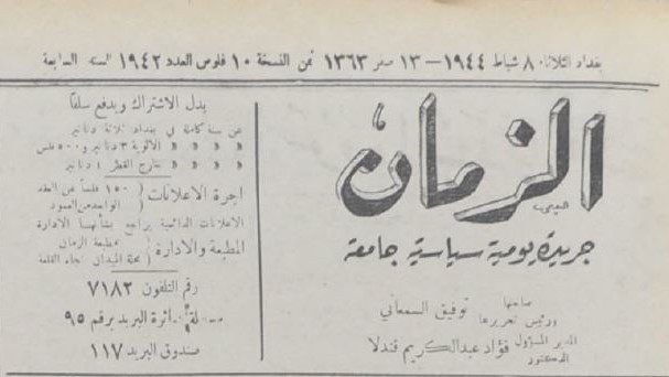 صاحبها ومدير تحريرها : توفيق السمعاني.