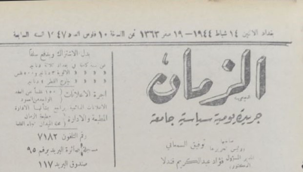 الزمان (جريدة : بغداد، العراق : 1937)