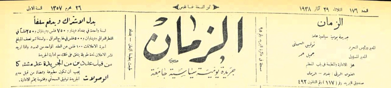 الزمان (جريدة : بغداد، العراق : 1937)