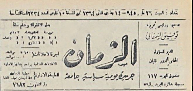 الزمان (جريدة : بغداد، العراق : 1937)
