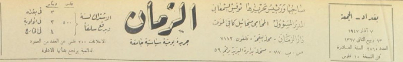 الزمان (جريدة : بغداد، العراق : 1937)