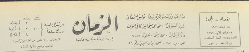 الزمان (جريدة : بغداد، العراق : 1937)