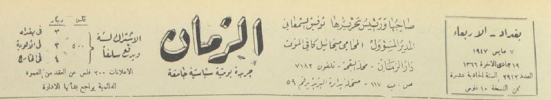 صاحبها ومدير تحريرها : توفيق السمعاني.
