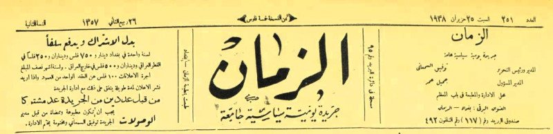 صاحبها ومدير تحريرها : توفيق السمعاني.