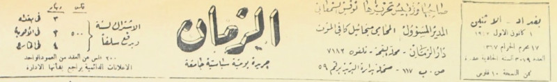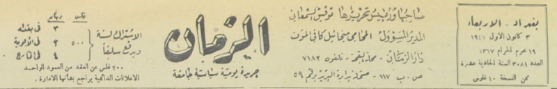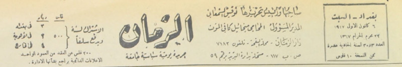 صاحبها ومدير تحريرها : توفيق السمعاني.