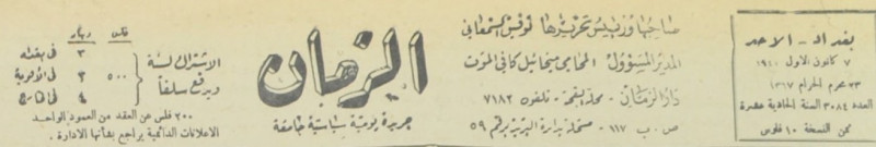 صاحبها ومدير تحريرها : توفيق السمعاني.