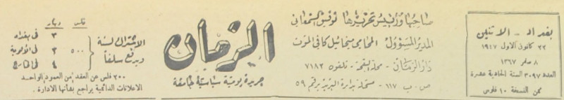 صاحبها ومدير تحريرها : توفيق السمعاني.