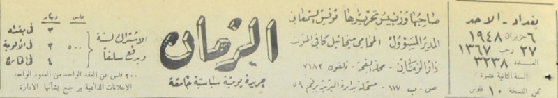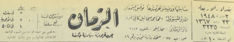 صاحبها ومدير تحريرها : توفيق السمعاني.