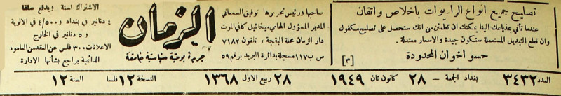 الزمان (جريدة : بغداد، العراق : 1937)