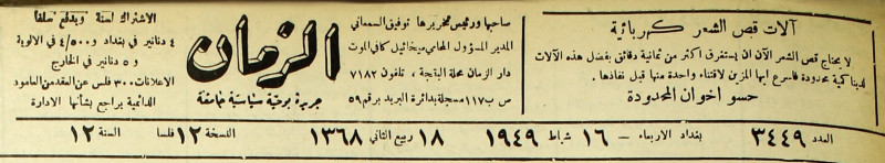 الزمان (جريدة : بغداد، العراق : 1937)