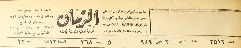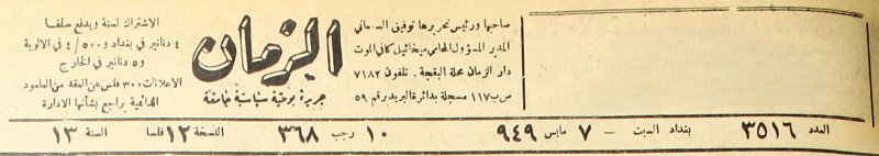 صاحبها ومدير تحريرها : توفيق السمعاني.