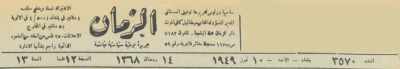 الزمان (جريدة : بغداد، العراق : 1937)