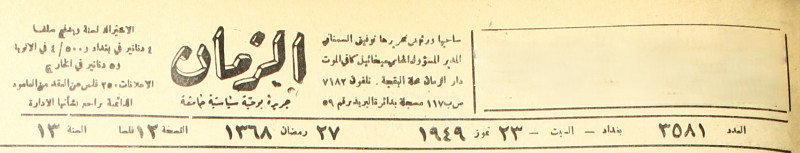 الزمان (جريدة : بغداد، العراق : 1937)