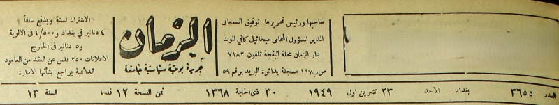 الزمان (جريدة : بغداد، العراق : 1937)