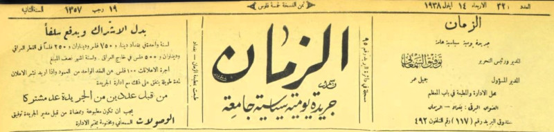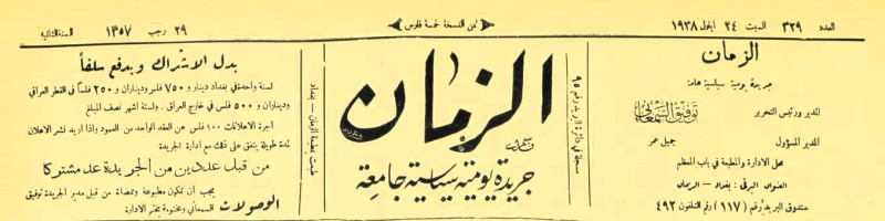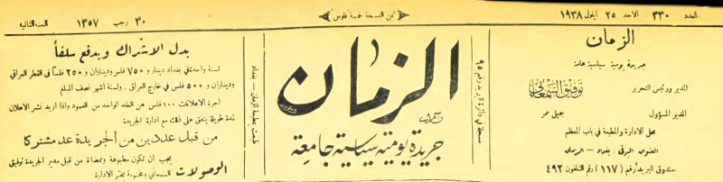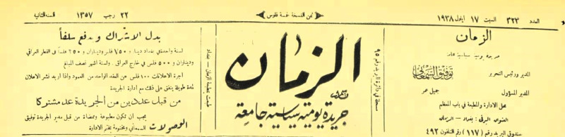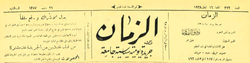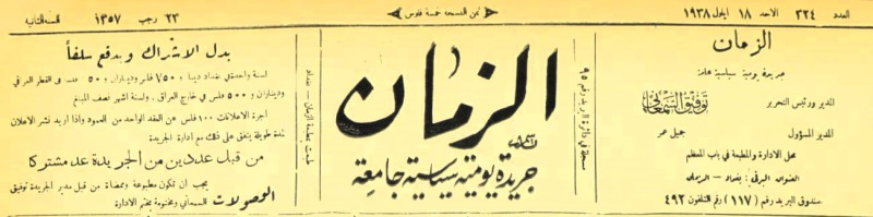 صاحبها ومدير تحريرها : توفيق السمعاني.