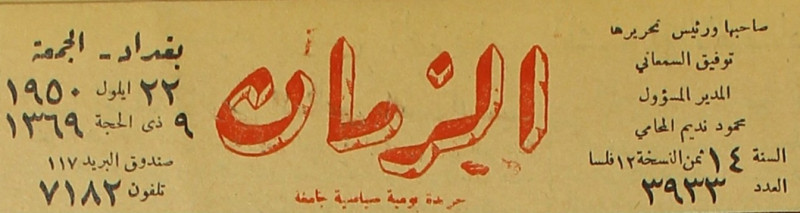 الزمان (جريدة : بغداد، العراق : 1937)