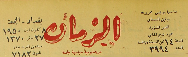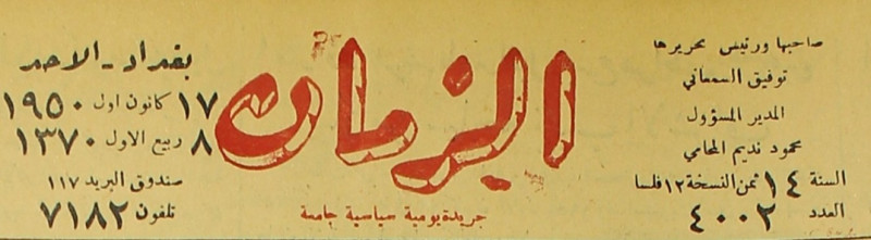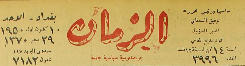 الزمان (جريدة : بغداد، العراق : 1937)