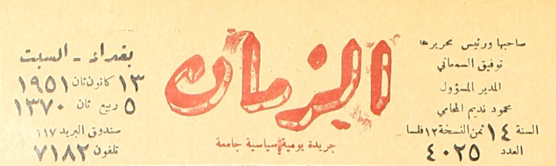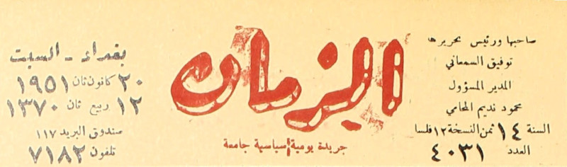 صاحبها ومدير تحريرها : توفيق السمعاني.