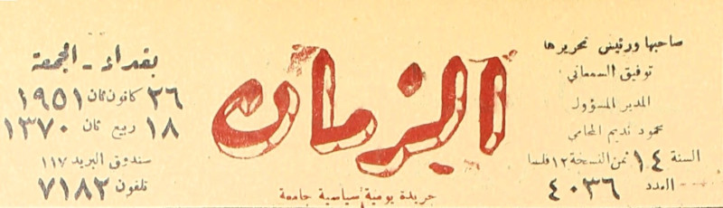 الزمان (جريدة : بغداد، العراق : 1937)