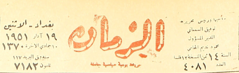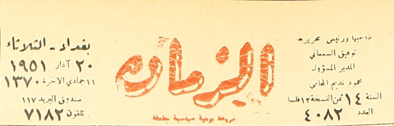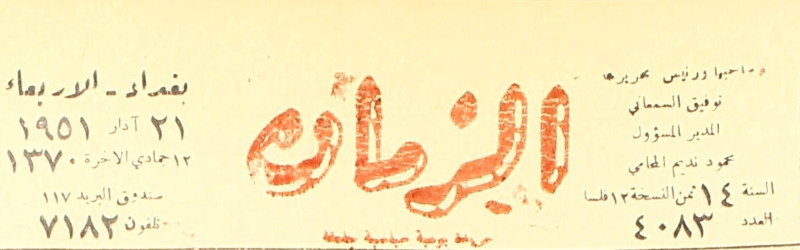 صاحبها ومدير تحريرها : توفيق السمعاني.