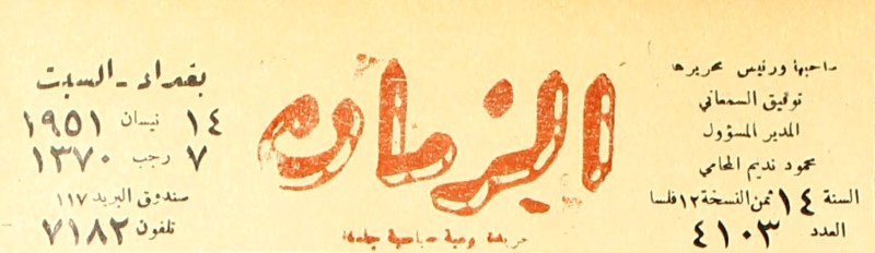 الزمان (جريدة : بغداد، العراق : 1937)