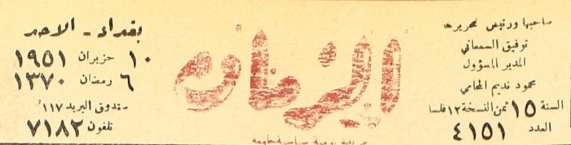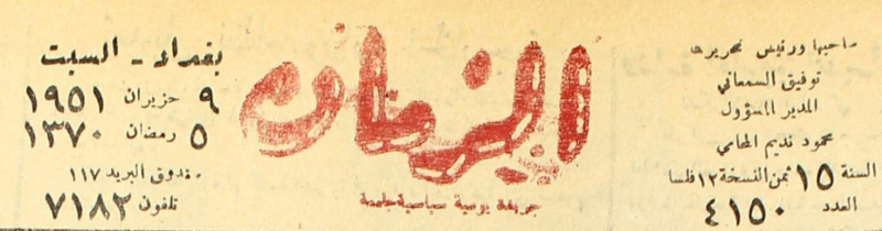صاحبها ومدير تحريرها : توفيق السمعاني.