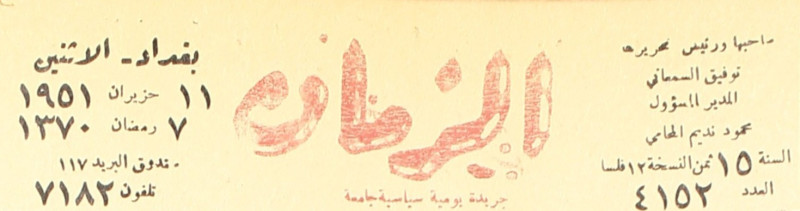 الزمان (جريدة : بغداد، العراق : 1937)