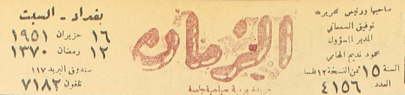 صاحبها ومدير تحريرها : توفيق السمعاني.