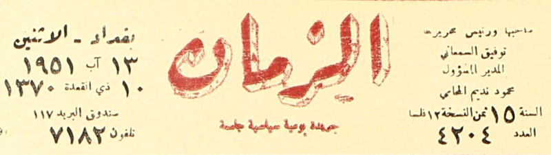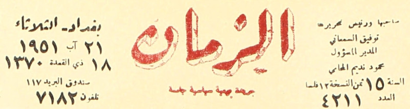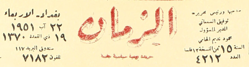 صاحبها ومدير تحريرها : توفيق السمعاني.