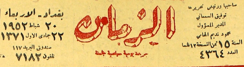 صاحبها ومدير تحريرها : توفيق السمعاني.