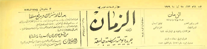 صاحبها ومدير تحريرها : توفيق السمعاني.
