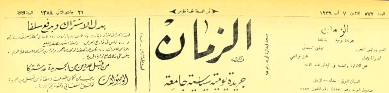 صاحبها ومدير تحريرها : توفيق السمعاني.