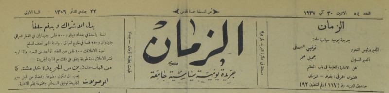 الزمان (جريدة : بغداد، العراق : 1937)