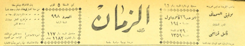 الزمان (جريدة : بغداد، العراق : 1937)