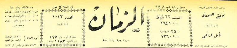 صاحبها ومدير تحريرها : توفيق السمعاني.