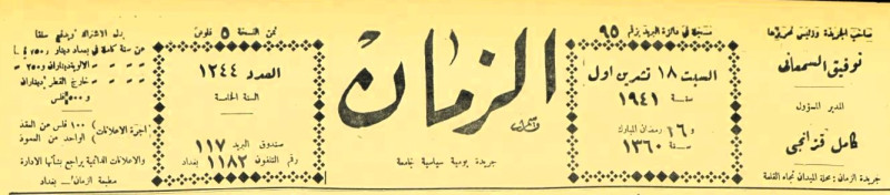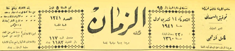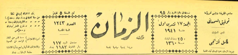 صاحبها ومدير تحريرها : توفيق السمعاني.