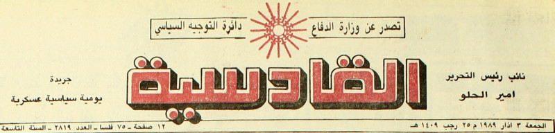 AL-QADISSYA : جريدة يومية سياسية عسكرية /