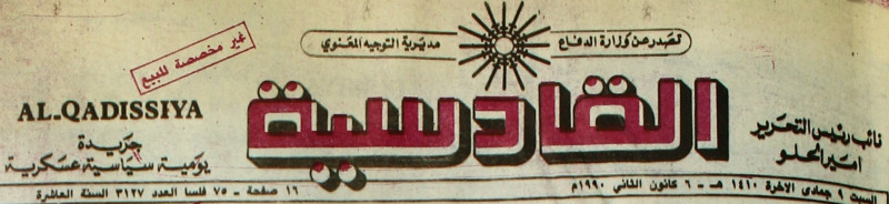AL-QADISSYA : جريدة يومية سياسية عسكرية /