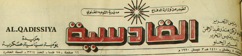 AL-QADISSYA : جريدة يومية سياسية عسكرية /