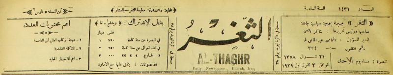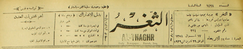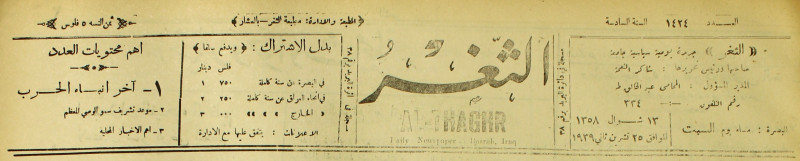 جريدة يومية سياسية عامة = AL-Thaghr : A Daily Newspaper