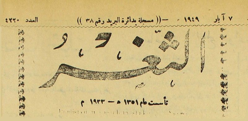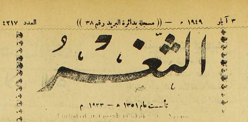 جريدة يومية سياسية عامة = AL-Thaghr : A Daily Newspaper
