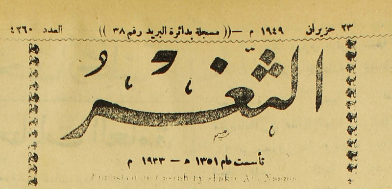 جريدة يومية سياسية عامة = AL-Thaghr : A Daily Newspaper