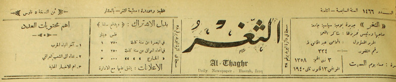 جريدة يومية سياسية عامة = AL-Thaghr : A Daily Newspaper