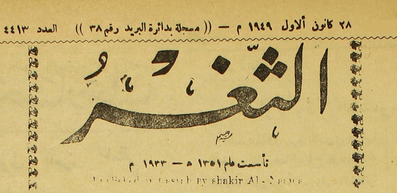 جريدة يومية سياسية عامة = AL-Thaghr : A Daily Newspaper