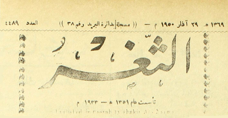 جريدة يومية سياسية عامة = AL-Thaghr : A Daily Newspaper