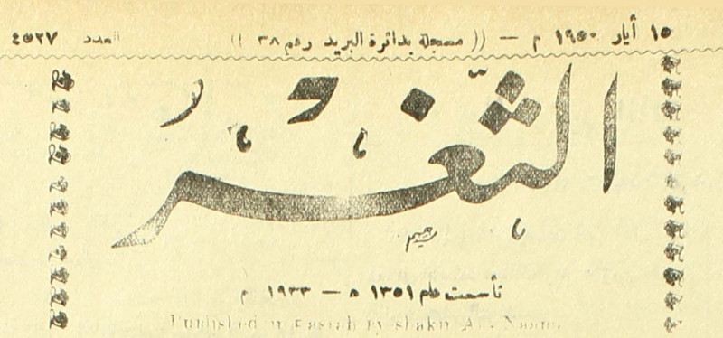 جريدة يومية سياسية عامة = AL-Thaghr : A Daily Newspaper