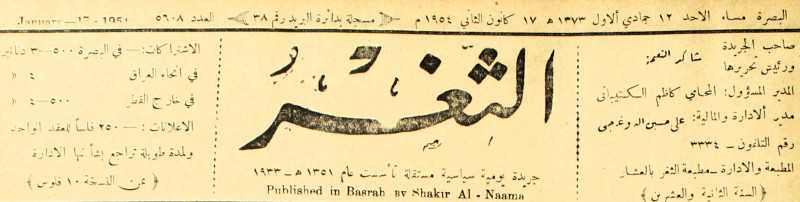 صاحبها ورئيس تحريرها : شاكر النعمة.